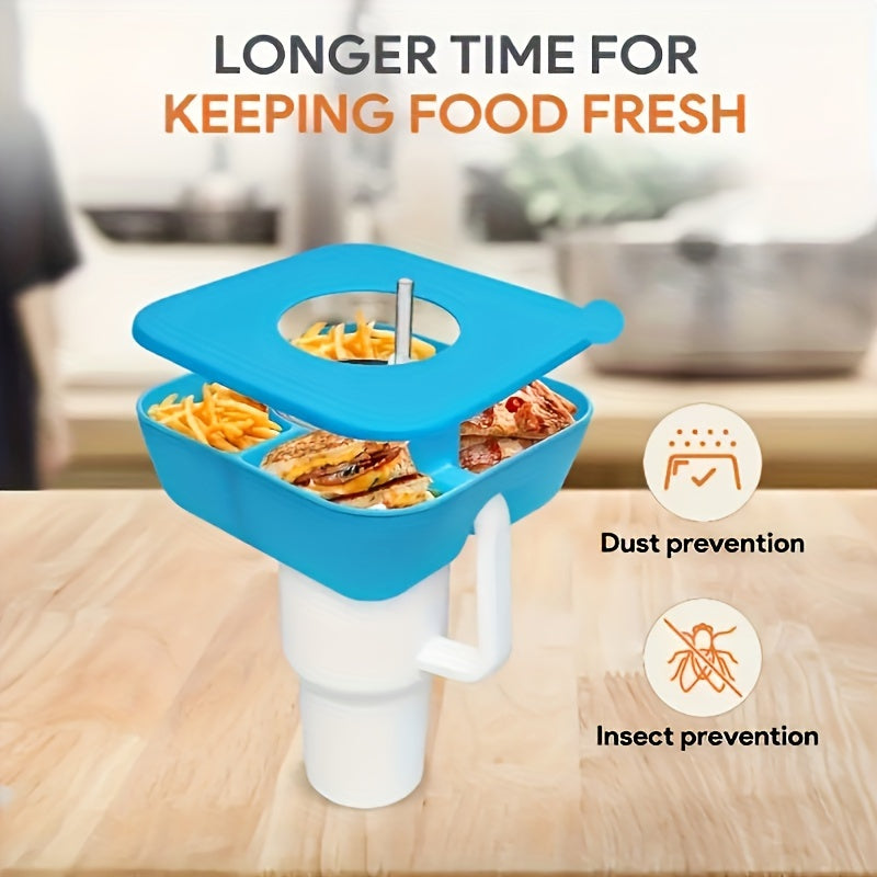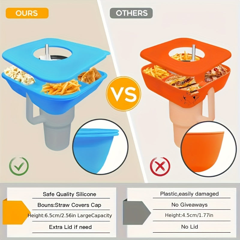 1pc Square Silicone Snack Trays With LIDS Are Used With Stanley Cups, Snack Bowl, Reusable Snack Holder, Snack Ring For 40 Oz Tumbler With Handle For Restaurant